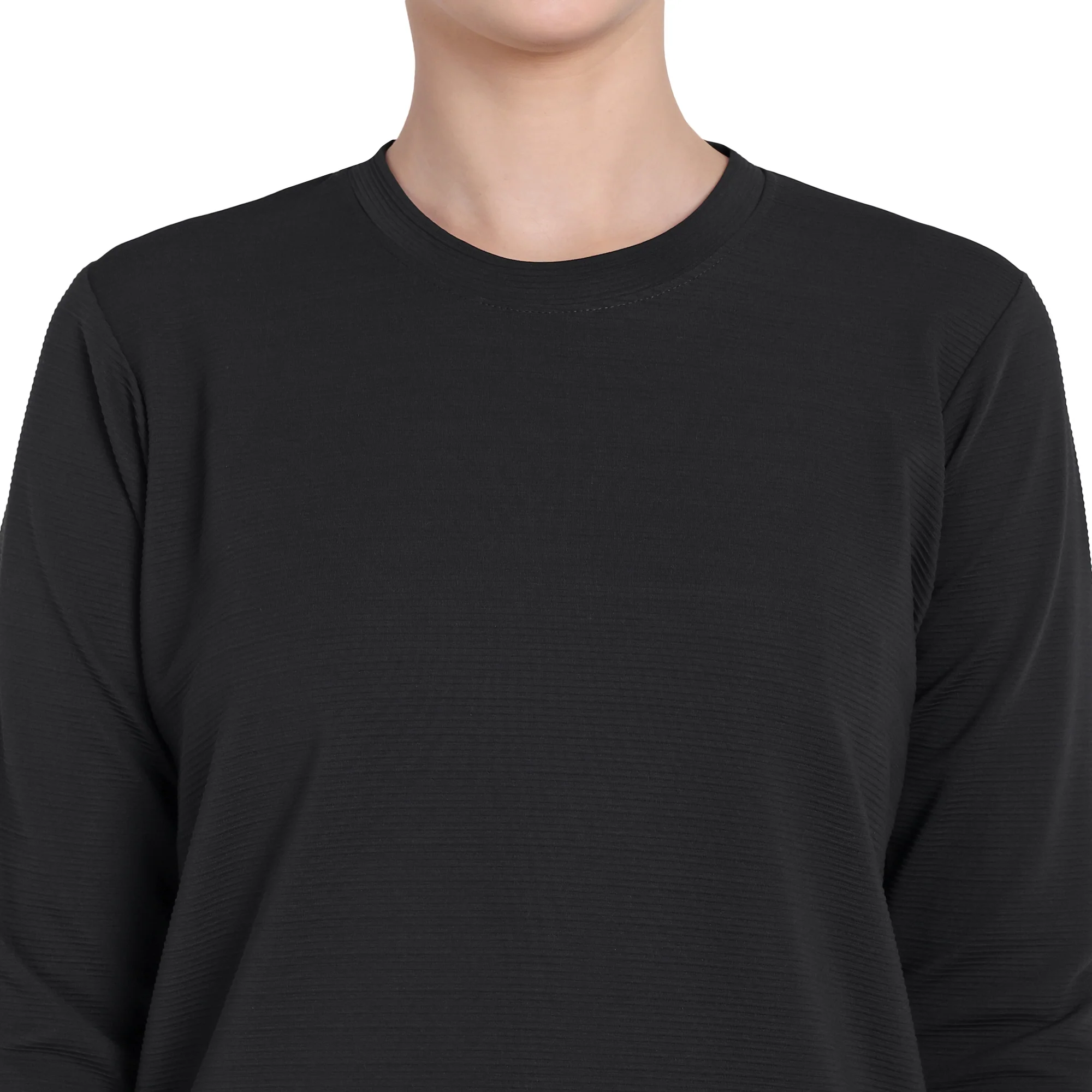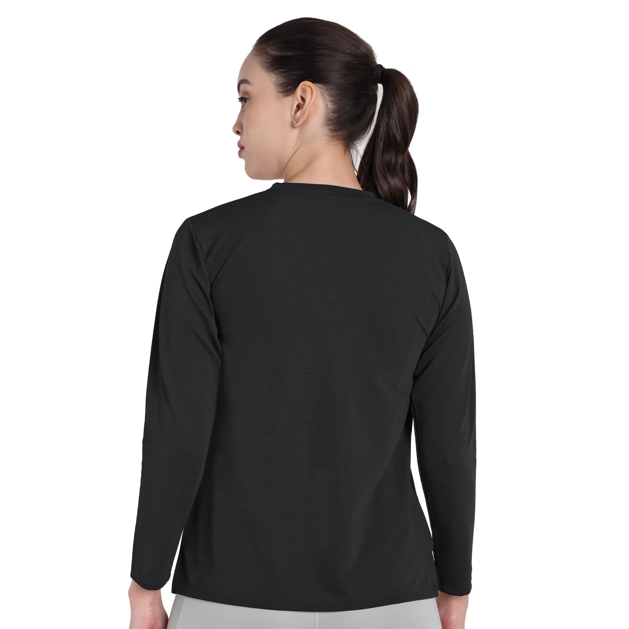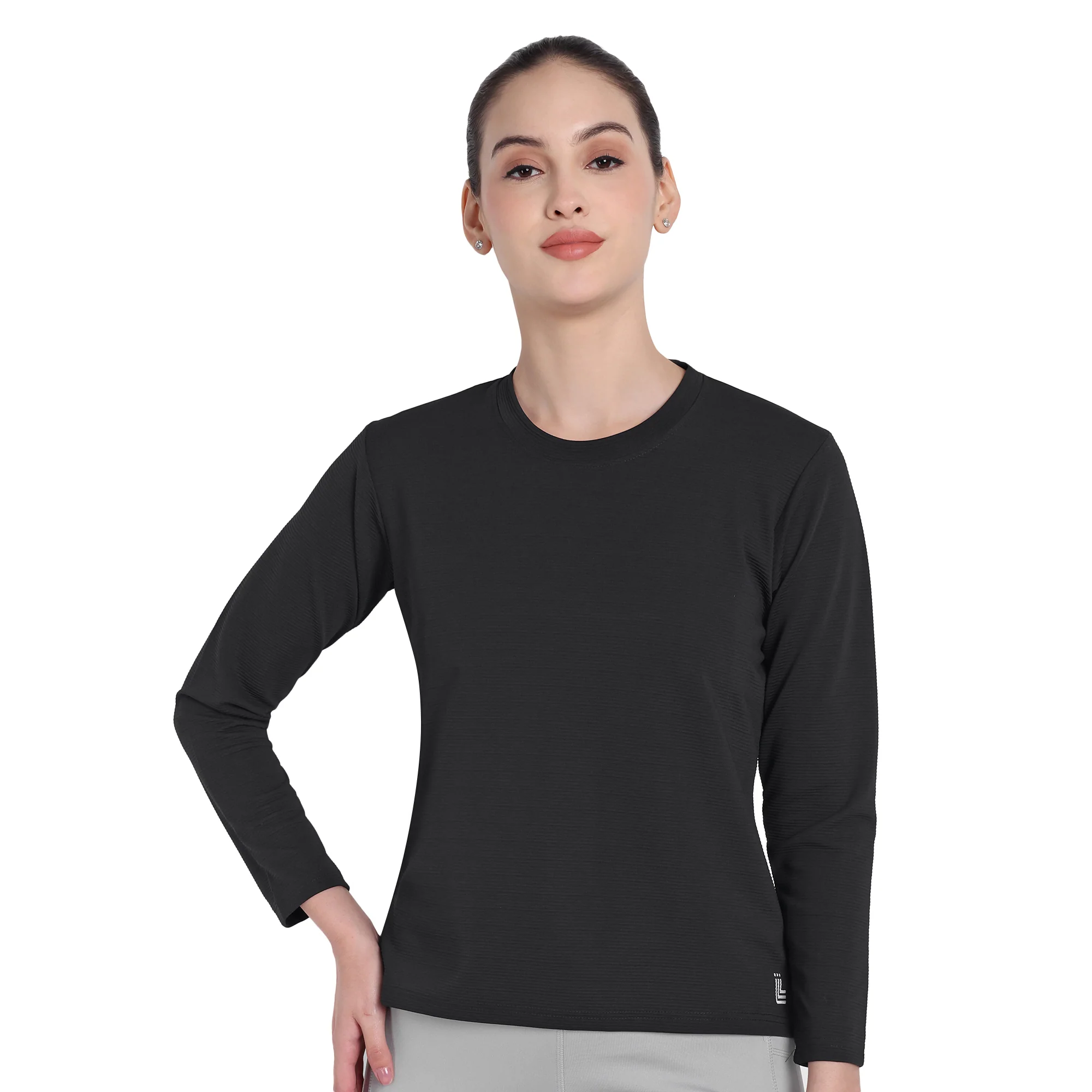 Full Sleeve Dry-fit Round Neck Black T-Shirt For Women