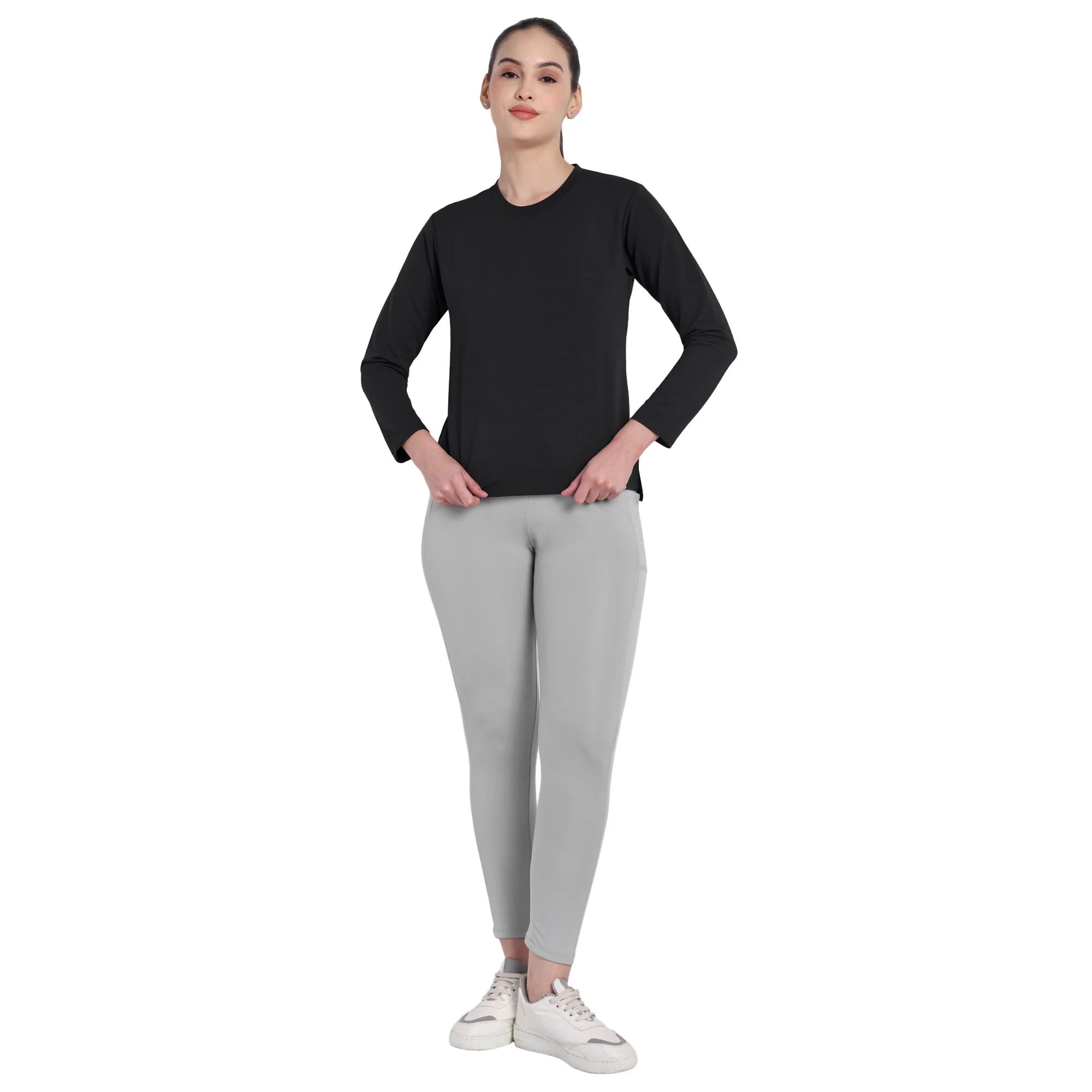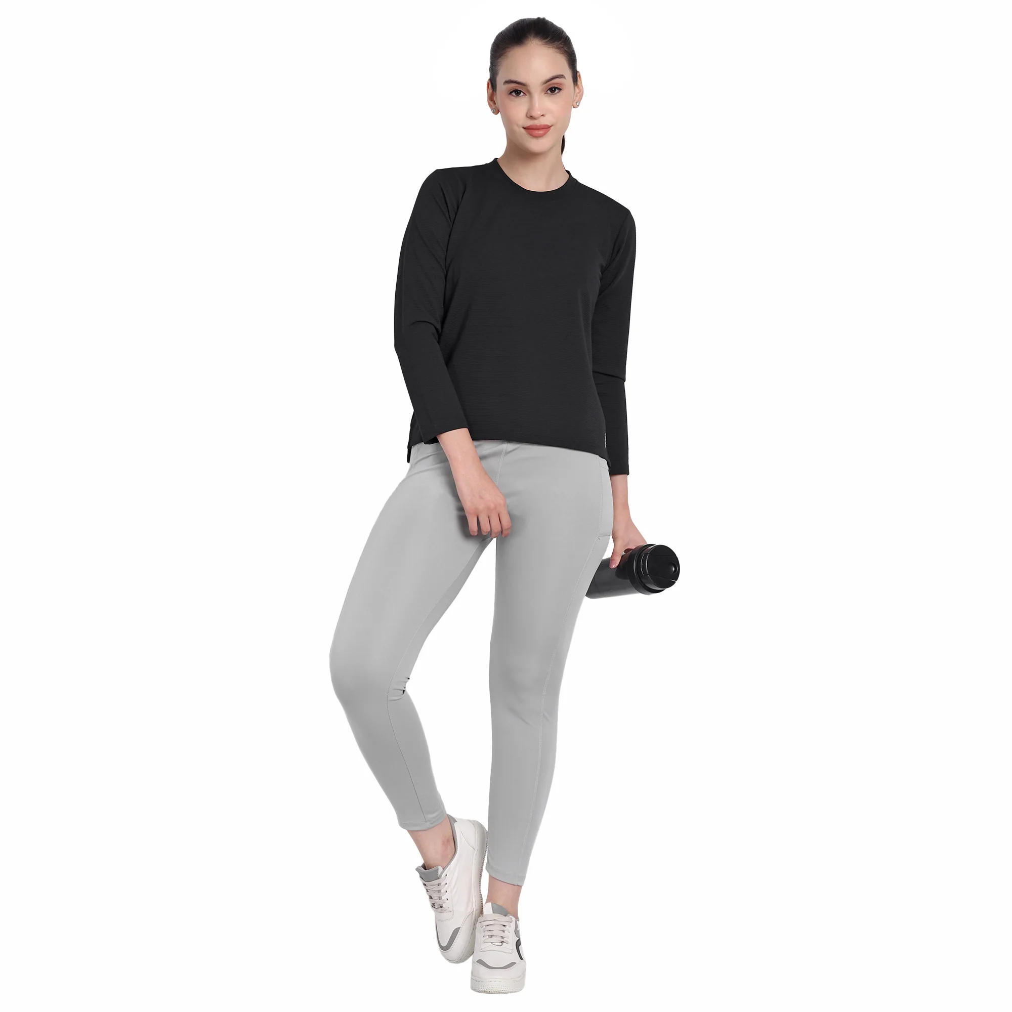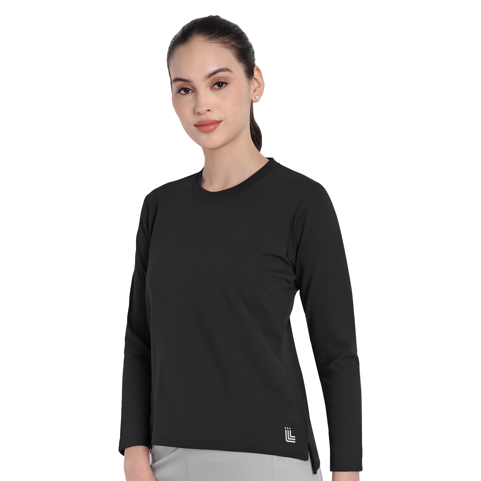 Full Sleeve Dry-fit Round Neck Black T-Shirt For Women
