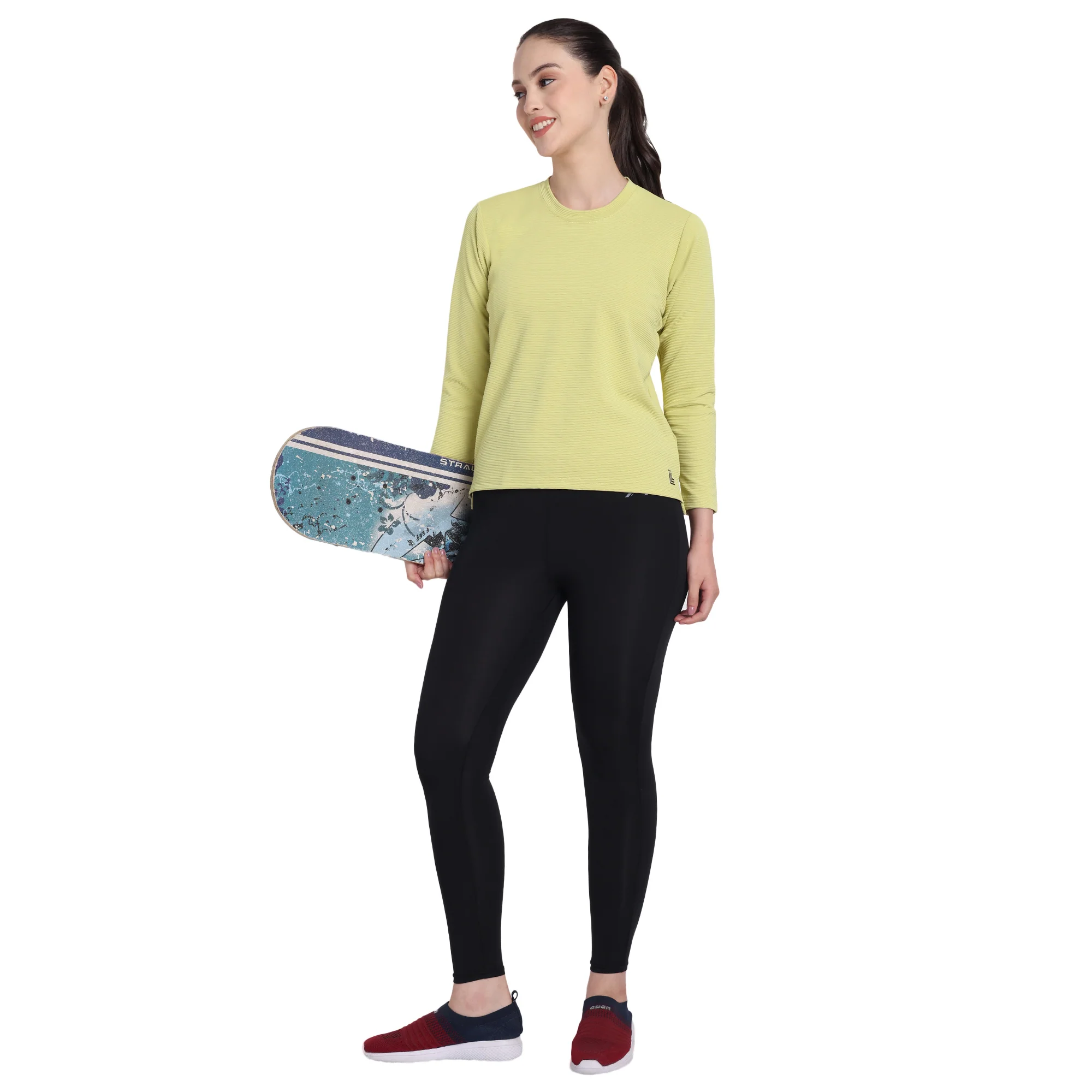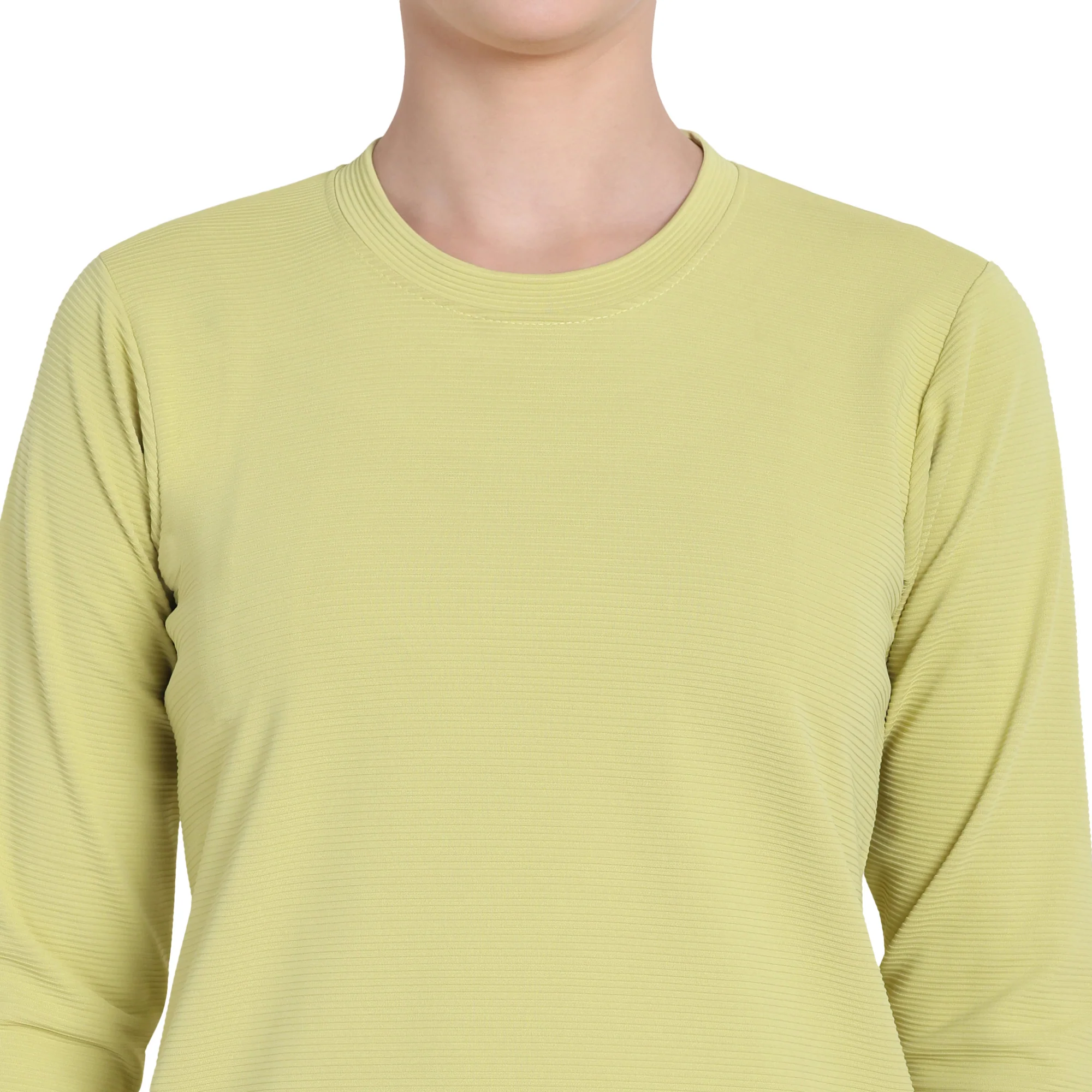 Full Sleeve Dry-fit Round Neck Light Green T-Shirt For Women
