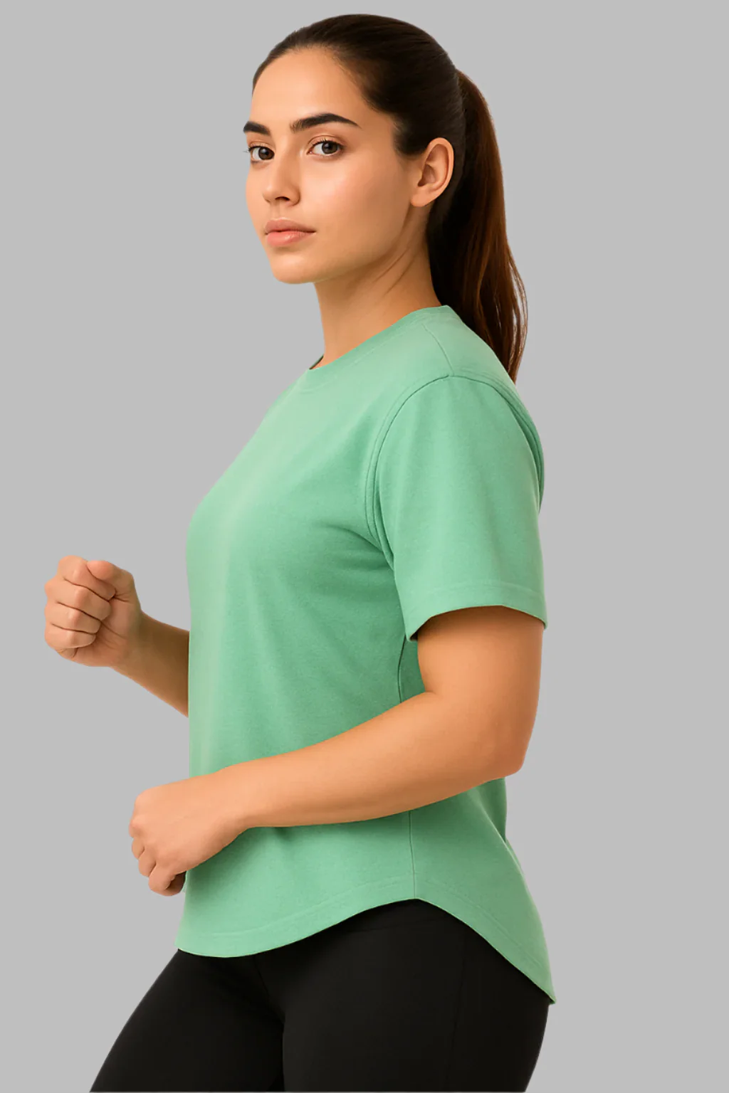 Light Green Apple Cut Rapid Dry Gym & Workout T-Shirt For Women