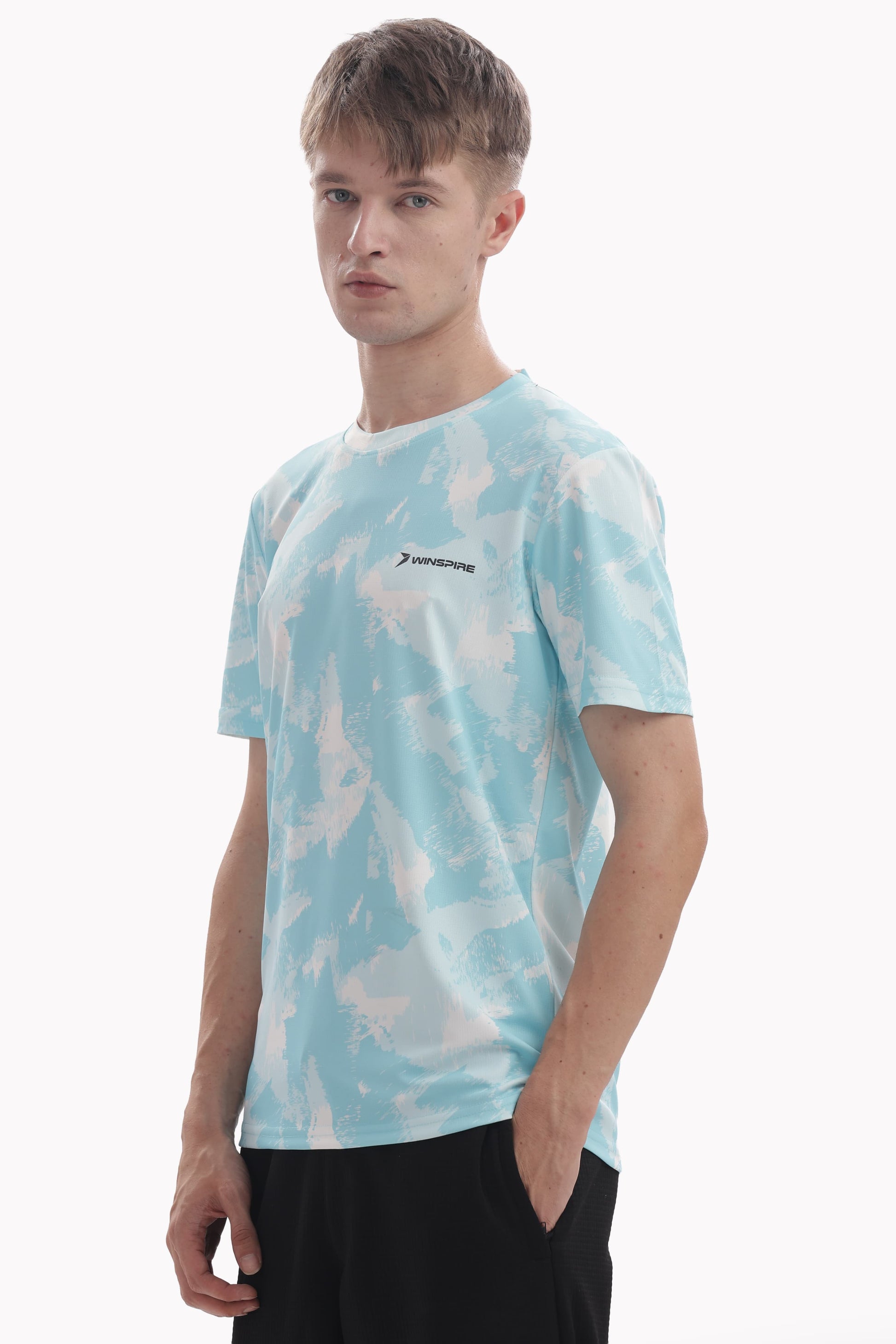 Sky Blue Textured Performance Gym T-Shirt For Men