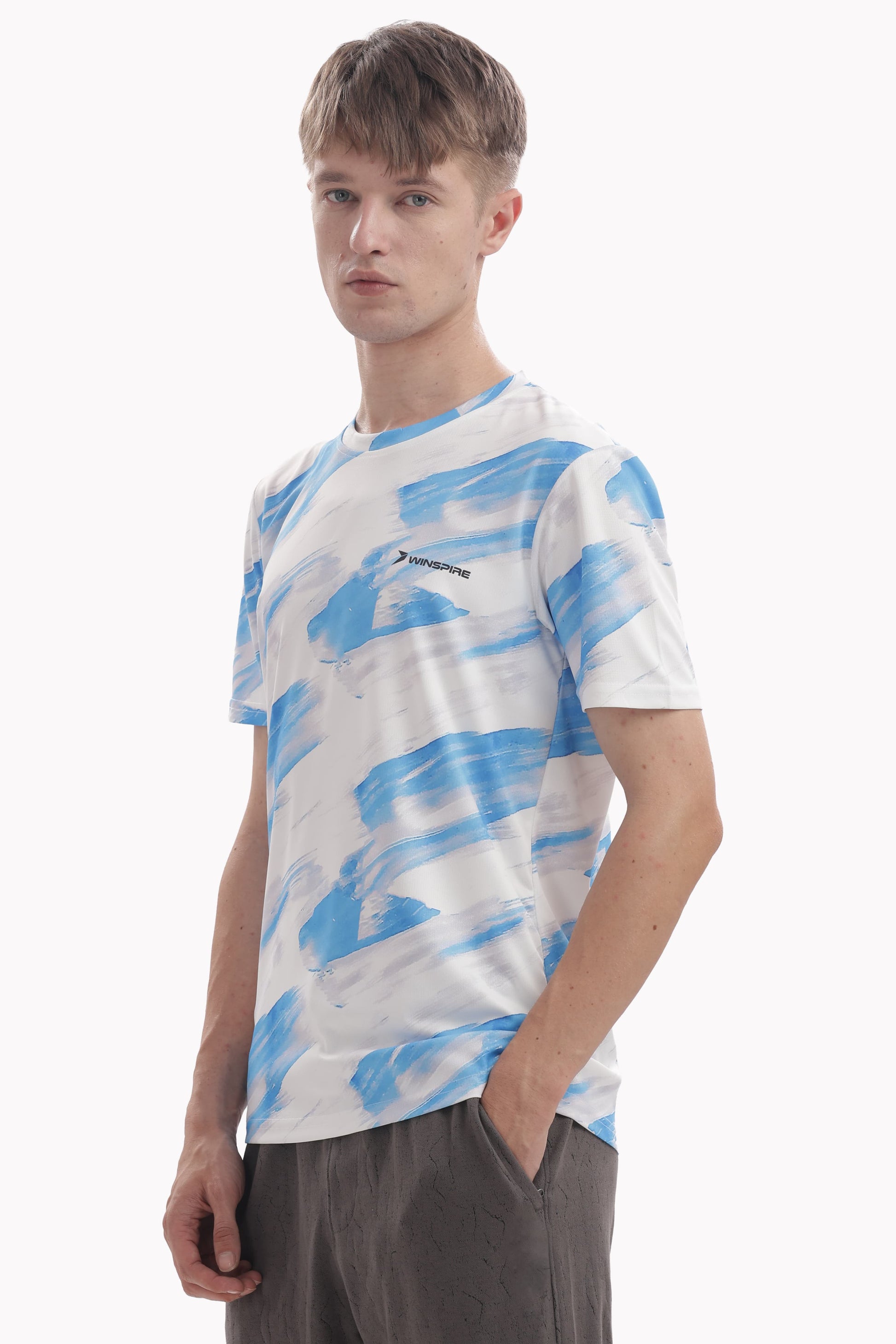 White & Light Blue color Gym T-Shirt for Men, Regular length & Round Neck, regular sleeves, Knitted polyester fabric.